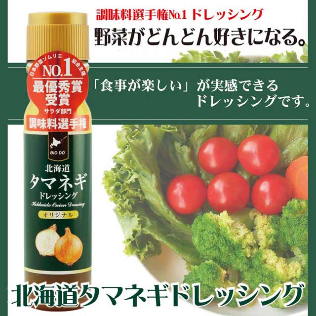 市販品おすすめ1:株式会社北海道バイオインダストリーの北海道タマネギドレッシング(日本野菜ソムリエ協会表彰)