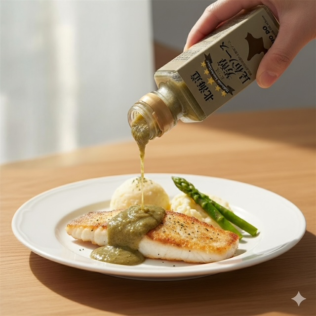 凝縮した濃厚かつ滑らかな昆布のソースです。